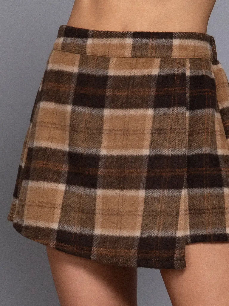 FRONT WRAP PLAID SHORT PANTS FABRIC: BRUSHED PLAID 95% POLYESTER 5% WOOL ** LONG SLEEVE INSIDE FAUX FUR w/POCKET BRUSHED PLAID JACKET: Please search style#J12524